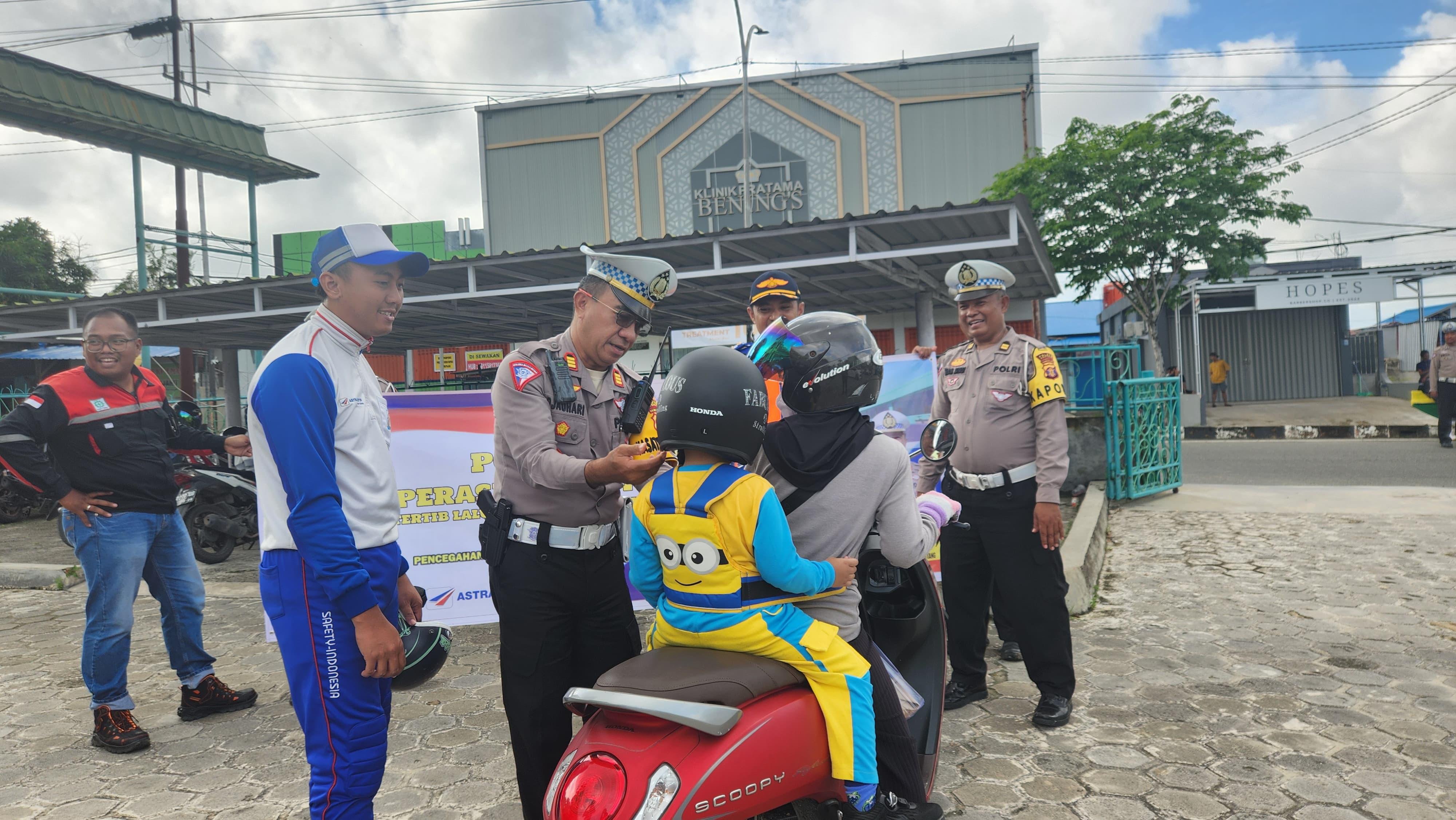 "Kami ikut melaksanakan campaign #cari_aman dalam Operasi Patuh Mahakam 2024, dengan membagi Thumbler sebagai bentuk dukungan mengurangi sampah plastik, membagi helm dan memasang sepanduk himbauan yang berisikan Pencegahan terhadap gangguan yang berpotensi menyebabkan kemacetan, pelanggaran dan kecelakaan lalu lintas,” tambahnya.
