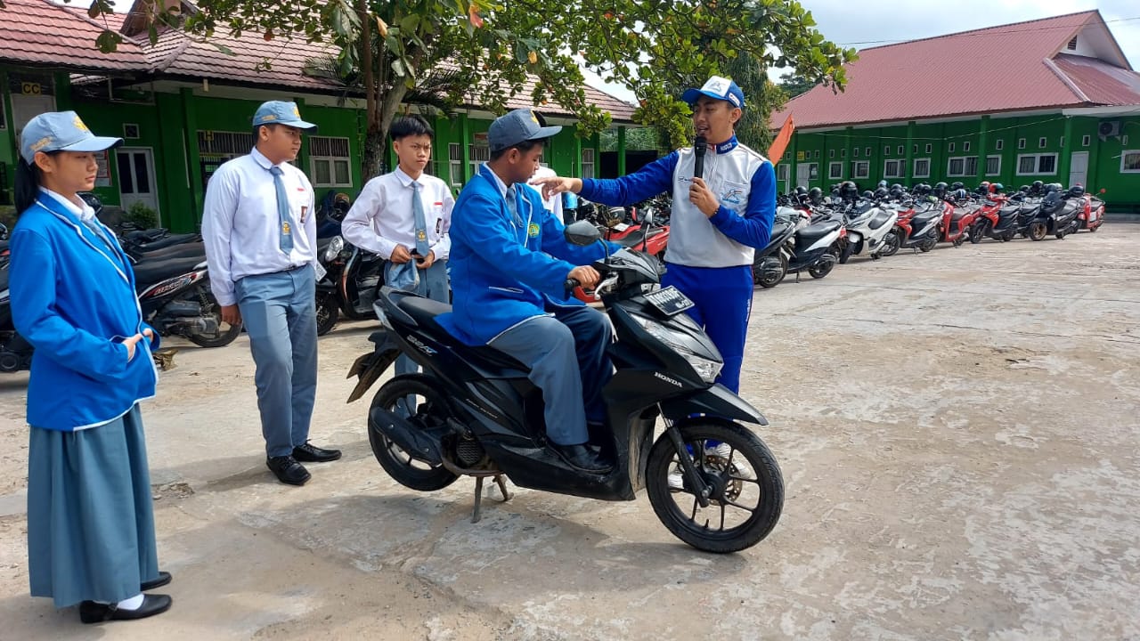 (Fajrin Nur Huda selaku Safety Riding Instructor Astra Motor Kaltim 2 saat memberikan tips berkendara yang baik lewat campaign #Cari_Aman di SMKN 14 Samarinda)