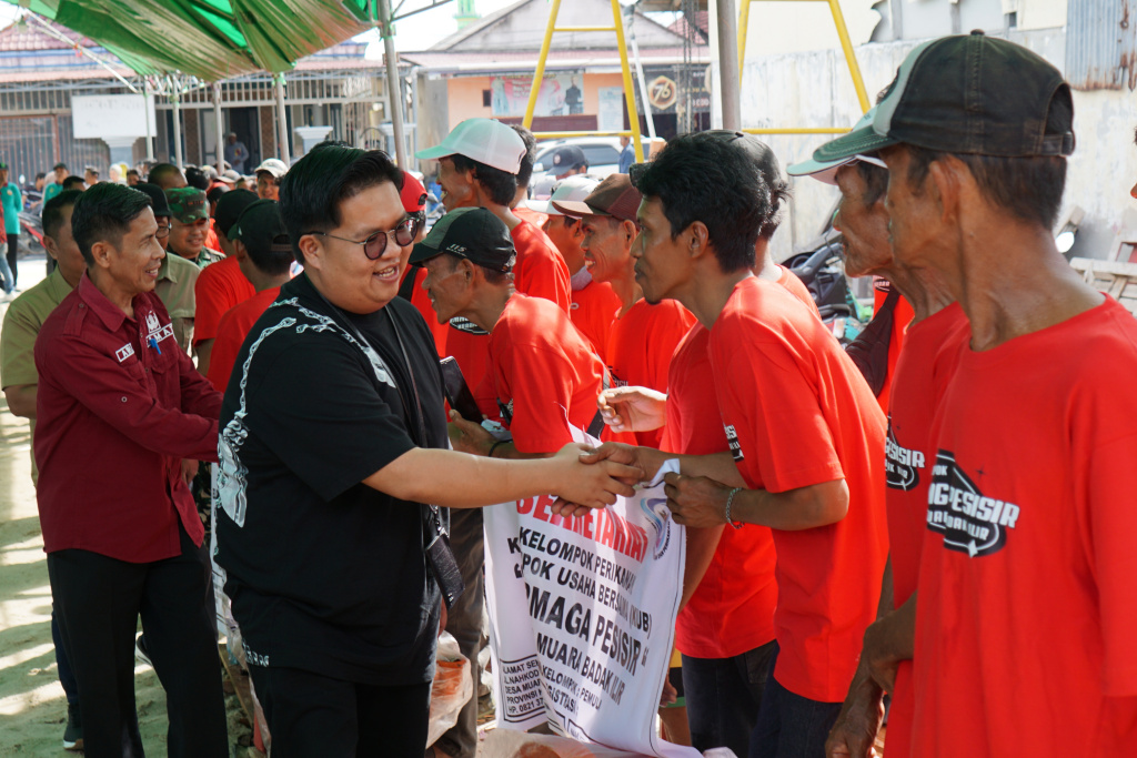 Penyerahan bantuan dilakukan di Dermaga Toko Lima, Kecamatan Muara Badak, disambut suka cita oleh para nelayan, Jumat (9/8/2024).